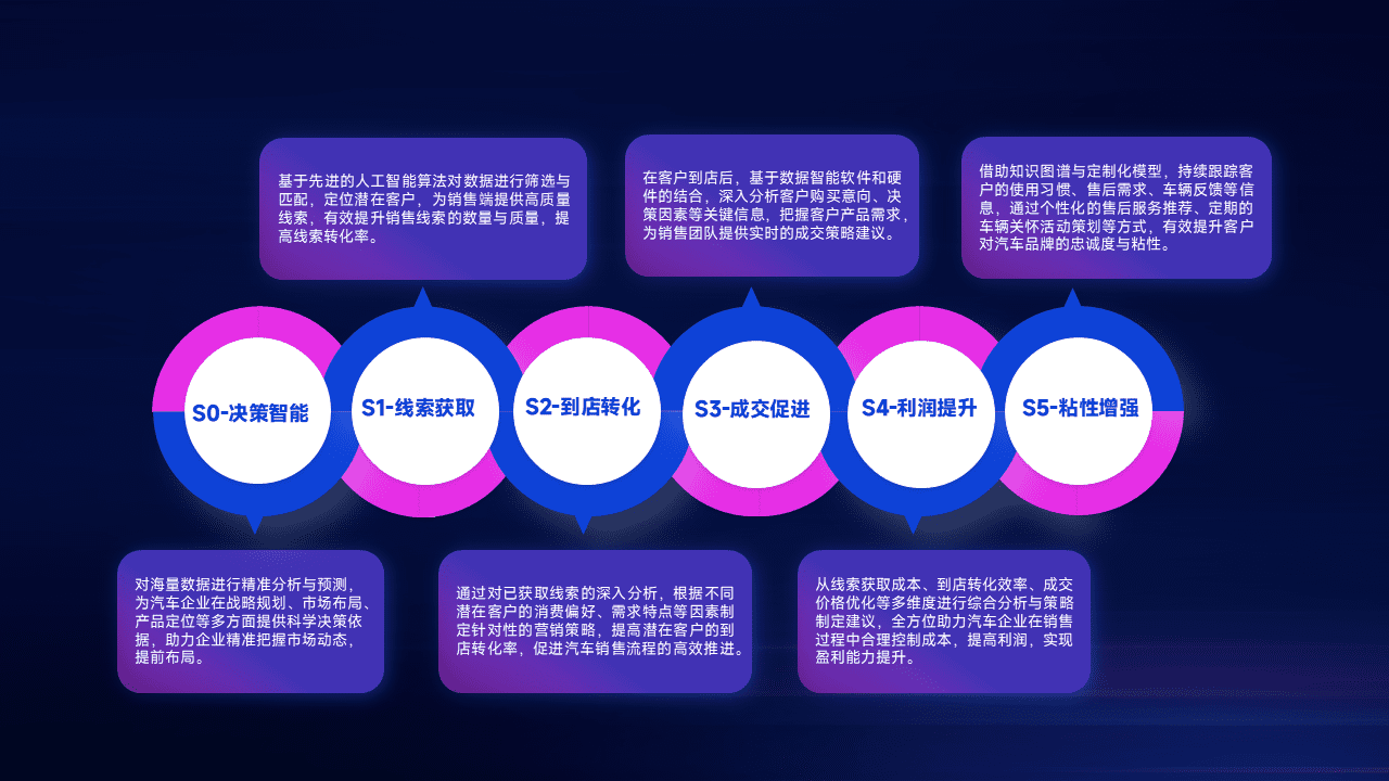 通过拓宽潜在客户来源、、优化线索分配并提高到店转化率,,,,以增强销售效率。。。同时,,,,利用线索数据不断优化分析模型,,,,有效提升转化率,,扩大营销影响力。。。。